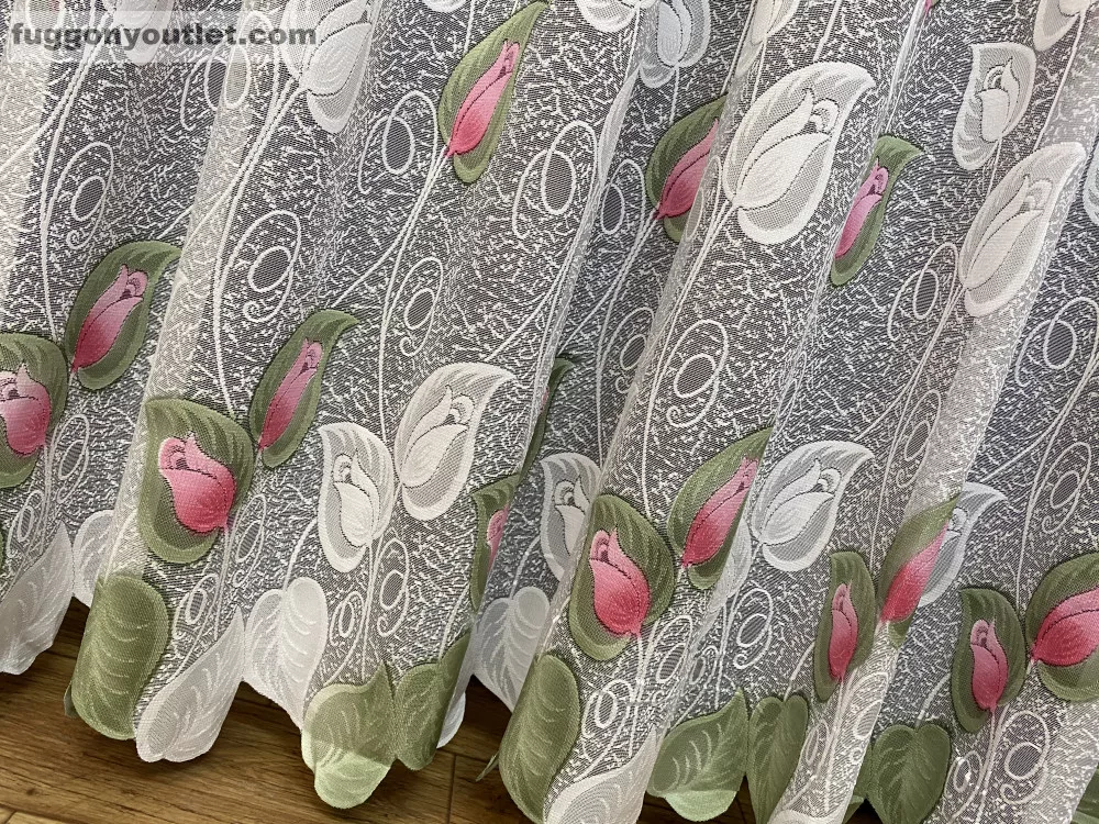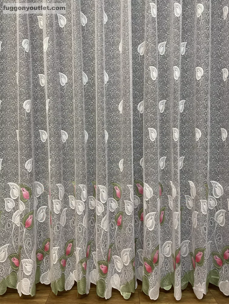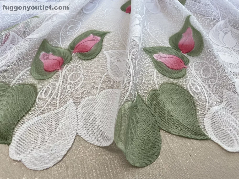 Tulipánlevél, fehér alapon Rózsaszín,-zöld, 300x175 cm