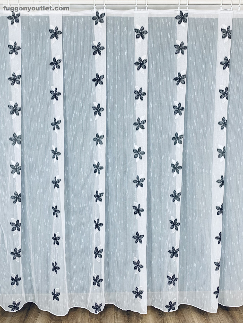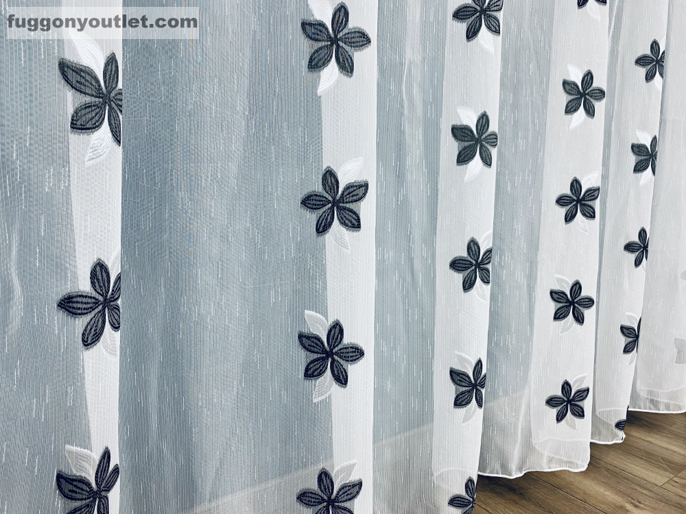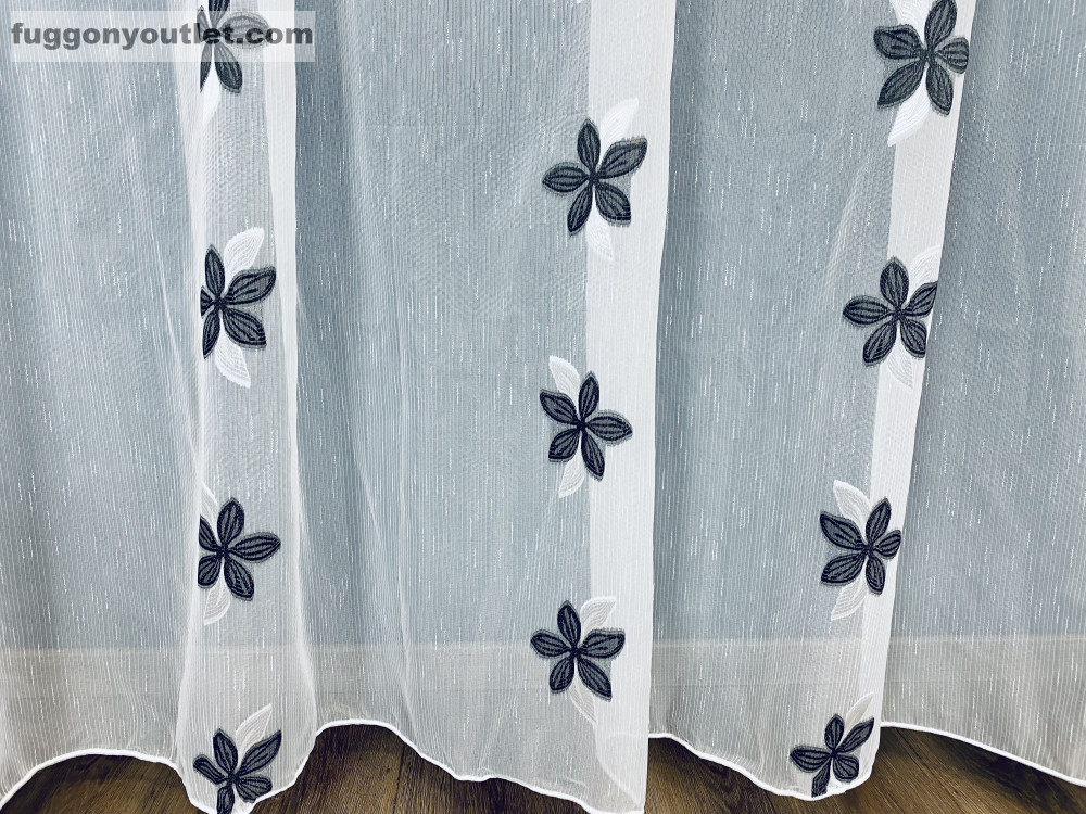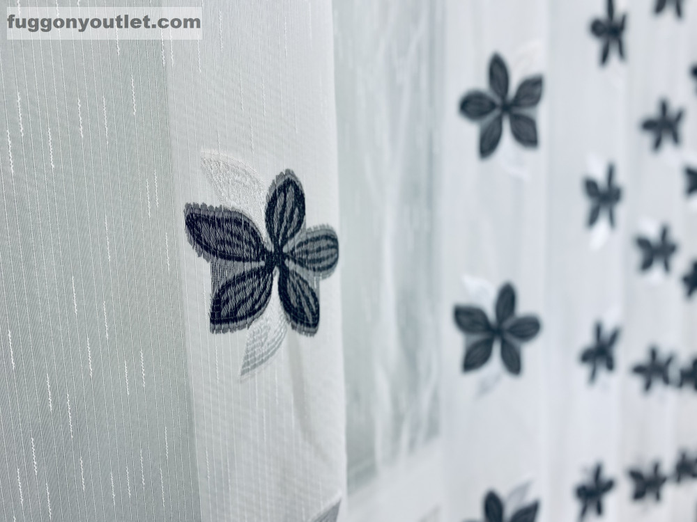 Voile, fehér alapon fekete virágos, 200x210 cm