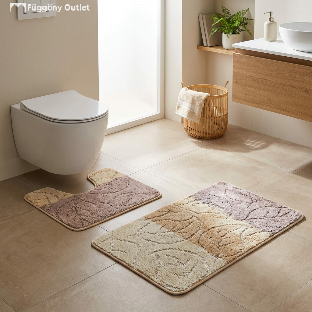 Fürdőszoba szőnyeg szett, amely puha tapintásával és csúszásgátló hátoldalával kényelmes és biztonságos használatot nyújt.