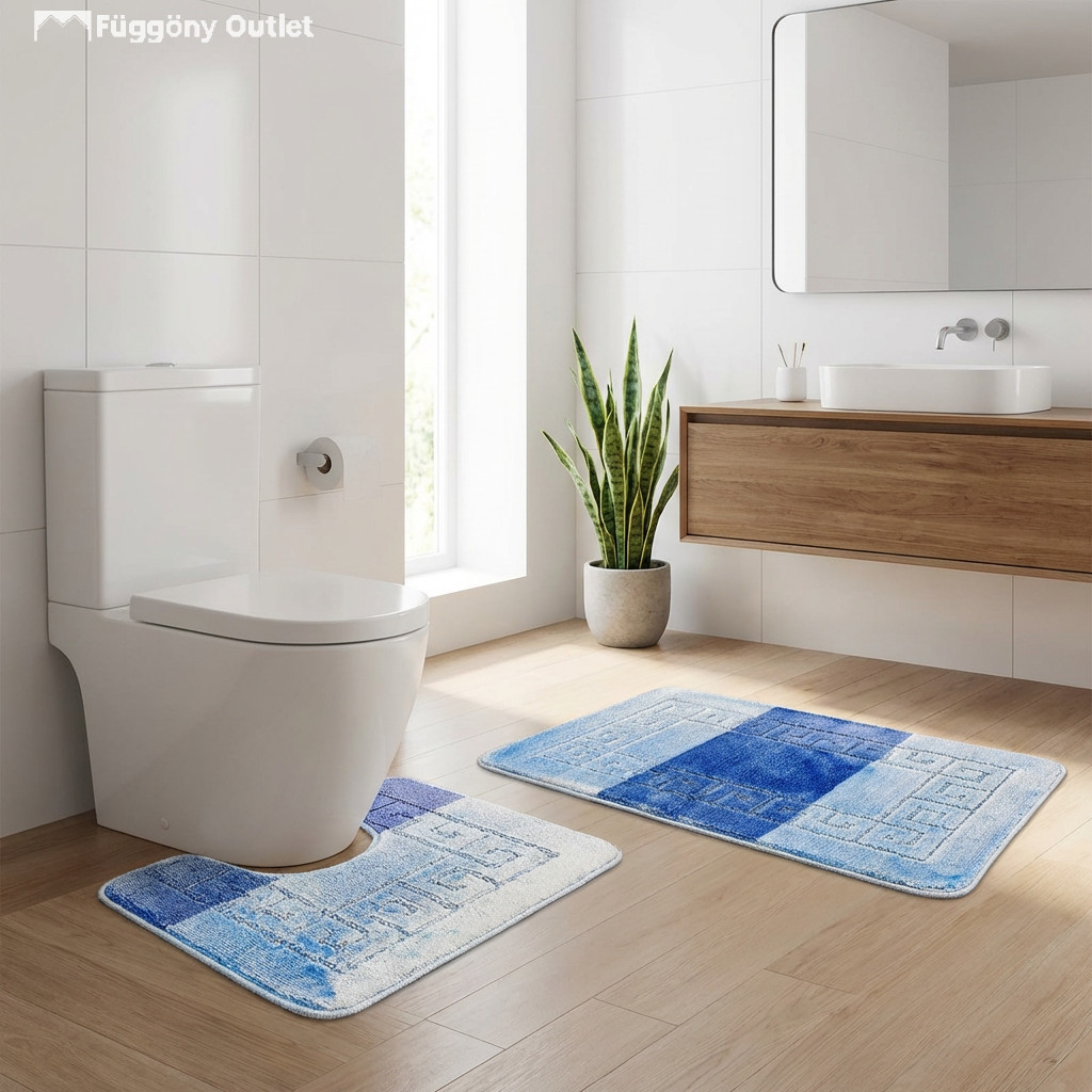 Fürdőszoba szőnyeg szett, amely puha tapintásával és csúszásgátló hátoldalával kényelmes és biztonságos használatot nyújt.